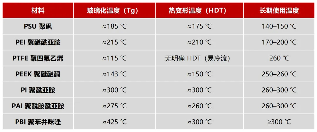 ●卻擁有遠(yuǎn)高于 PEI、PSU 的長(zhǎng)期使用溫度