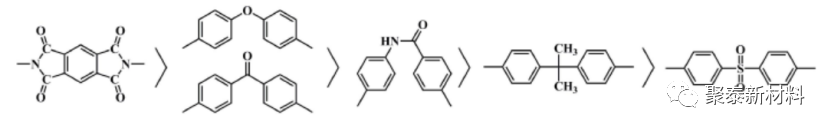 PEEK分子鏈結(jié)構(gòu)中包含大量的苯環(huán)、醚鍵和羰基,當(dāng)材料接受電子束、伽馬射線、中子射線、X 射線、混合輻照場等輻照源輻照后,由于苯環(huán)共軛π鍵的離域作用,將吸收的輻照能轉(zhuǎn)變成熱能釋放出去,進(jìn)而達(dá)到耐輻照的效果。Tsuneo Sasuga[4]等人根據(jù)拉伸性能的變化將耐輻照穩(wěn)定性按以下順序排列:聚酰亞胺>PEEK>聚酰胺>聚醚酰亞胺>聚芳酸酯>聚砜,聚(苯氧化物),即根據(jù)聚合物分子主鏈化學(xué)結(jié)構(gòu),按以下順序排列:
