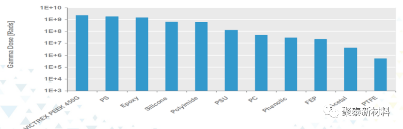 4)聚醚醚酮,由于具有高比例的苯環(huán),缺少不耐輻照的脂肪鏈,因此能耐MGy級的γ射線輻照。
