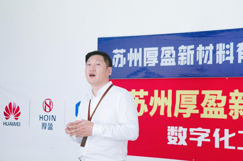 10:00,簽約儀式正式開始。厚盈新材料生產(chǎn)陳總、華為吳江賦能中心王總及新核云軟件項目經(jīng)理張經(jīng)理進行簽約儀式,聚泰新材料總經(jīng)理徐總見證簽約儀式。