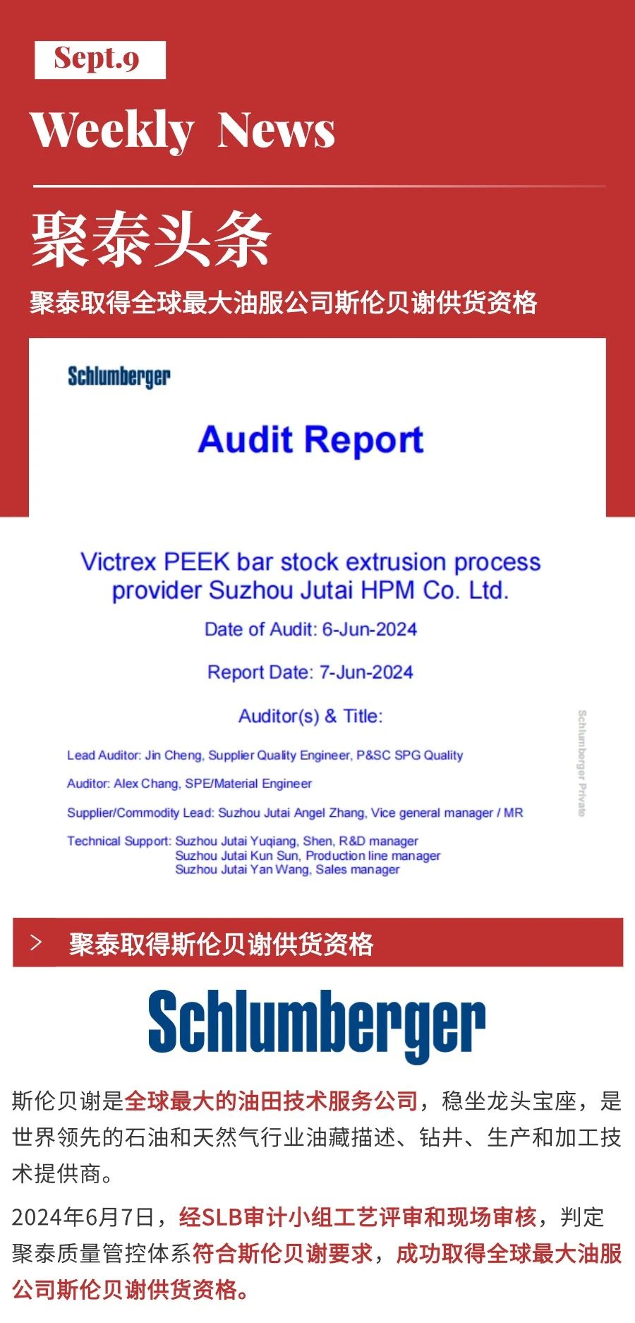 聚泰頭條|聚泰取得全球最大油服公司斯倫貝謝供貨資格